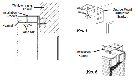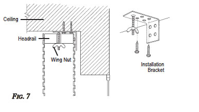 - Secure the headrail to installation brackets by tightening wing nuts. (See Fig. 7.)